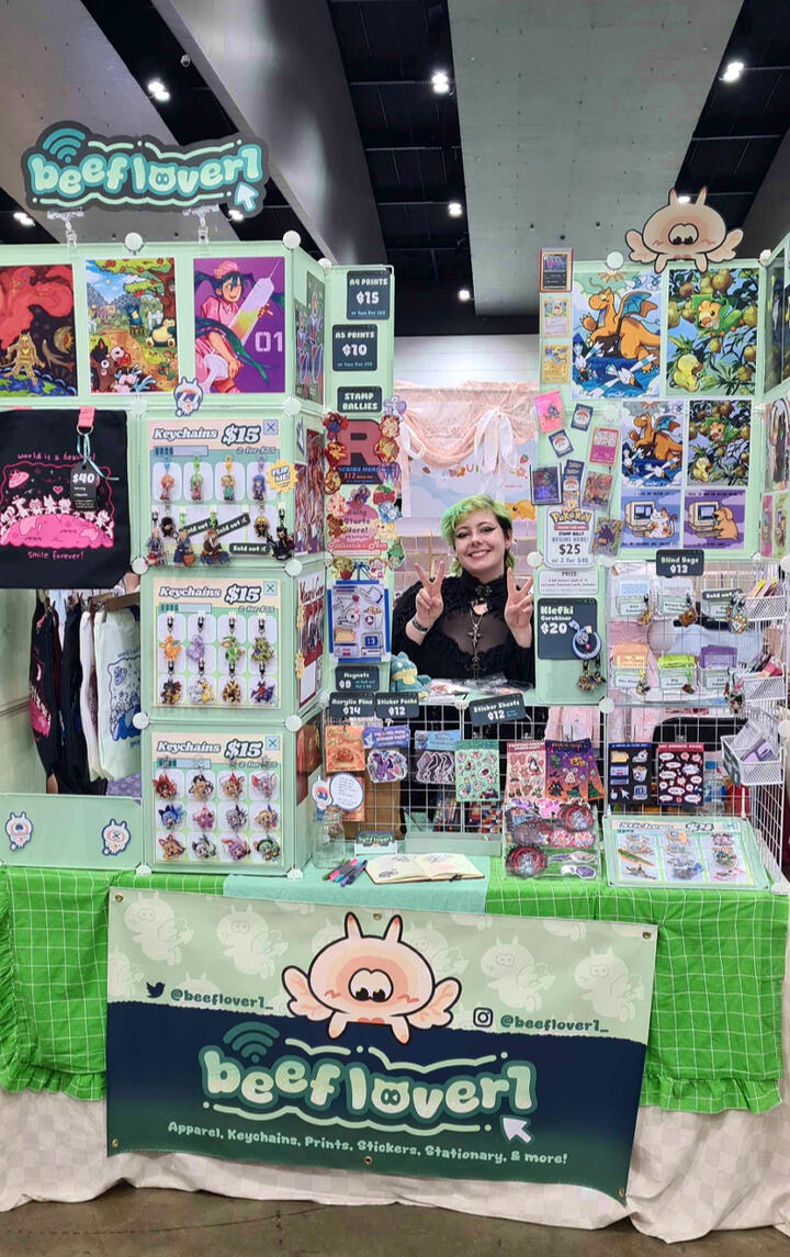 Hey there! I'm Sav, owner of 'beeflover1'I'm a queer, Melbourne based Illustrator and I love to draw all things retro, nostalgic and niche! I love dragons, dinosaurs & POKEMON!! My products consist of old 2000's fandom merchandise, niche Pokemon & silly animals.